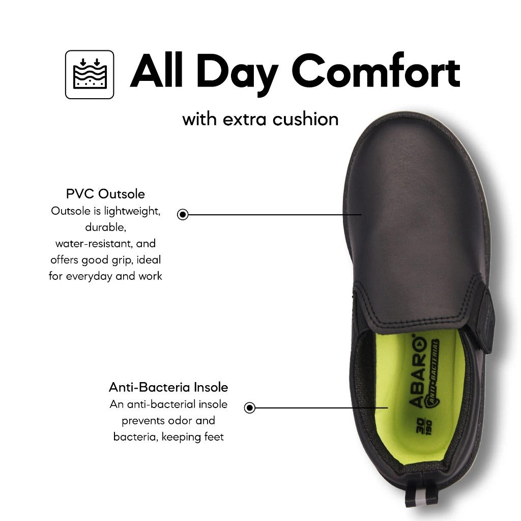 ABARO Unisex Slip Resistant 2661D Anti Bacterial Super Comfy/School Shoes/Slip On Canvas/Kasut Sekolah Hitam